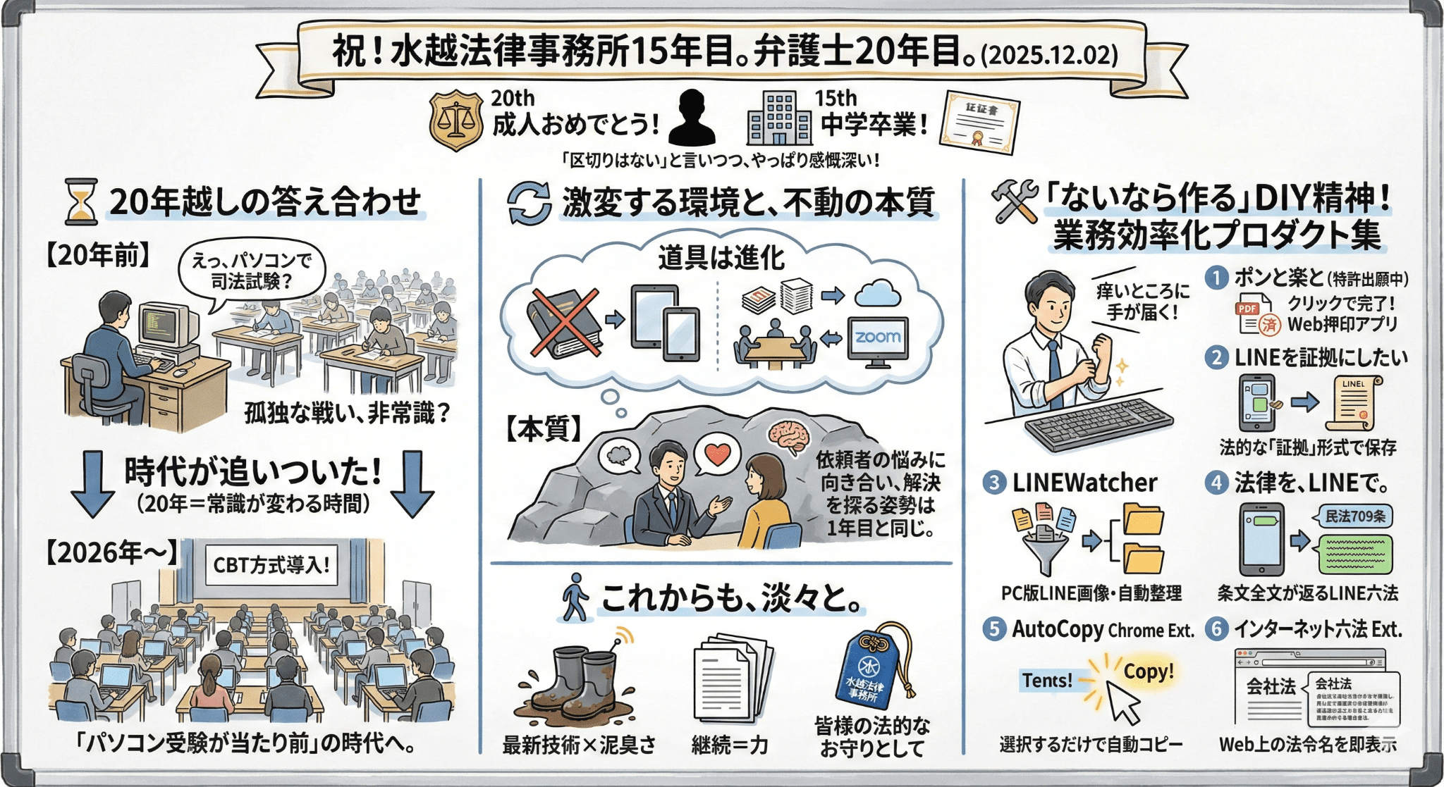 こうして並べてみると、弁護士としての20年は、同時に「業務の効率化」と向き合い続けた20年でもあったのかもしれません。