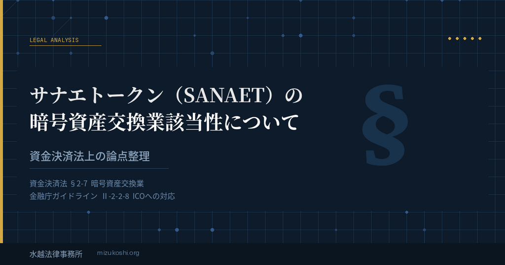 サナエトークンの発行・販売スキームは、資金決済法上の暗号資産交換業に該当する可能性があります。